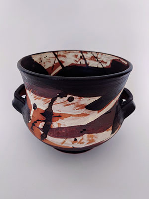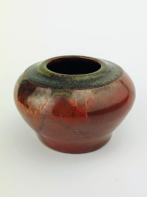 釉薬の可能性は、色彩感覚を限りなく広げ、思いもよらない変化や、奥深さを表現します。まるで、朱塗りの器のような陶器の色彩も驚きです。