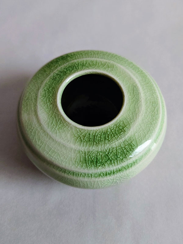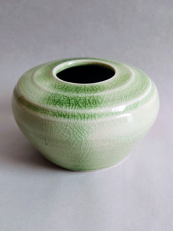 貫入が入った鶸色の釉薬が、透明感のある軽やかな雰囲気を作りました。